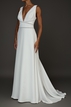 Vestido de Noiva da marca Rosa Clará. Confeccionado em crepe sem bordados, decote V, decote traseiro médio, sem manga, saia godê e cauda longa. Peça seminova em excelente estado de conservação. Apresenta sinais muito sutis de uso.