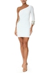 Vestido curto da marca Jovani. Confeccionado no tecido jersey em tom branco. Peça seminova em excelente estado de conservação. Apresenta sinais muito sutis de uso.Tamanho original da marca: US 4Não acompanha outros itens da foto.