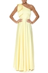 Vestido longo da marca Essential Collection. Confeccionado no tecido cetim em tom amarelo. Peça seminova em excelente estado de conservação. Apresenta sinais muito sutis de uso.