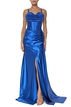 Vestido longo da marca Essential Collection. Confeccionado no tecido cetim em tom azul. Peça seminova em excelente estado de conservação. Apresenta sinais muito sutis de uso.