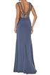 Vestido longo da marca Jovani. Confeccionado no tecido jersey em tom cinza. Peça seminova em excelente estado de conservação. Apresenta sinais muito sutis de uso.Tamanho original da marca: US 6Não acompanha outros itens da foto.