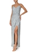 Vestido longo da marca Essential Collection. Confeccionado no tecido lurex em tom prata. Peça seminova em excelente estado de conservação. Apresenta sinais muito sutis de uso.