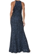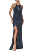 Vestido longo da marca Essential Collection. Confeccionado no tecido paetê em tom azul. Peça seminova em excelente estado de conservação. Apresenta sinais muito sutis de uso.
