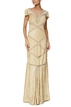 Vestido longo da marca Mabel Magalhães. Confeccionado no tecido tule em tom bege. Peça seminova em excelente estado de conservação. Apresenta sinais muito sutis de uso.