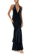 Vestido longo da marca Patricia Bonaldi / PatBo. Confeccionado no tecido veludo em tom azul. Peça seminova em excelente estado de conservação. Apresenta sinais muito sutis de uso.