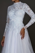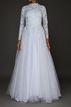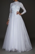 Vestido de Noiva da marca Prime Collection. Confeccionado em tule sem bordados, decote fechado, decote traseiro fechado, manga longa, saia godê e cauda longa. Peça seminova em excelente estado de conservação. Apresenta sinais muito sutis de uso.