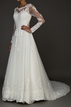 Vestido de Noiva da marca Prime Collection. Confeccionado em renda com detalhes bordados, decote fechado, decote traseiro fechado, manga longa, saia godê e cauda longa. Peça seminova em excelente estado de conservação. Apresenta sinais muito sutis de uso.