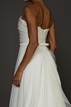 Vestido de Noiva da marca White Hall. Confeccionado em seda sem bordados, decote reto, decote traseiro médio, tomara-que-caia, saia godê e cauda curta. Peça seminova em excelente estado de conservação. Apresenta sinais muito sutis de uso.