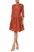 Vestido curto da marca Maje. Confeccionado no tecido renda em tom marrom. Peça seminova em excelente estado de conservação. Apresenta sinais muito sutis de uso.Tamanho original da marca: BR 36Não acompanha outros itens da foto.