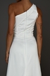Vestido de Noiva da marca Essential Collection. Confeccionado em cetim sem bordados, decote assimétrico, decote traseiro aberto, um ombro, saia godê e cauda curta. Peça seminova em excelente estado de conservação. Apresenta sinais muito sutis de uso.